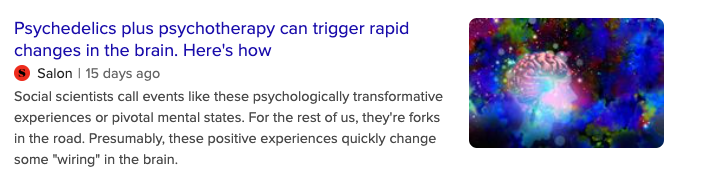 Las experiencias que la gente puede llamar «psicodélicas», o de expansión mental, también ocurren espontáneamente, o a partir de prácticas en todo el mundo, que, cuando reciben apoyo, también pueden conducir a cambios en tu narrativa personal y/o a sentirte equilibrado (o no) en tu salud mental. La psicoterapia asistida por psicodélicos puede ser apropiada para algunas personas, independientemente de que hayan ingerido una sustancia química en su cuerpo.